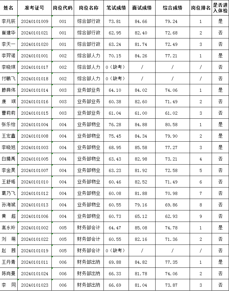 考試成績(jī)及進(jìn)入體檢人員名單